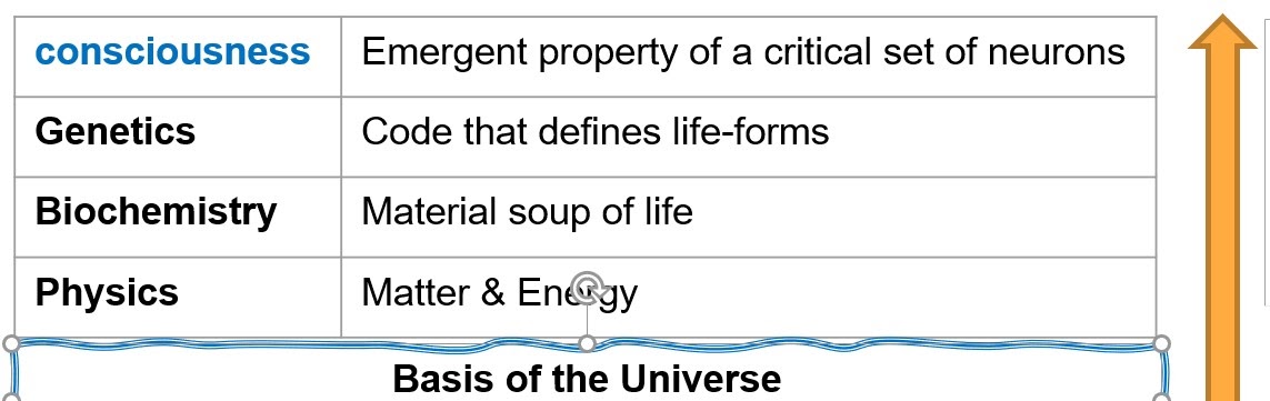 Being conscious, or wisely aware, is our highest psychological state of Being, but we must acknowledge its roots in materiality, else it becomes mere philosophy, and go down the rabbit hole of speculating whether the Universe is itself Conscious, and never being able to realize this state.